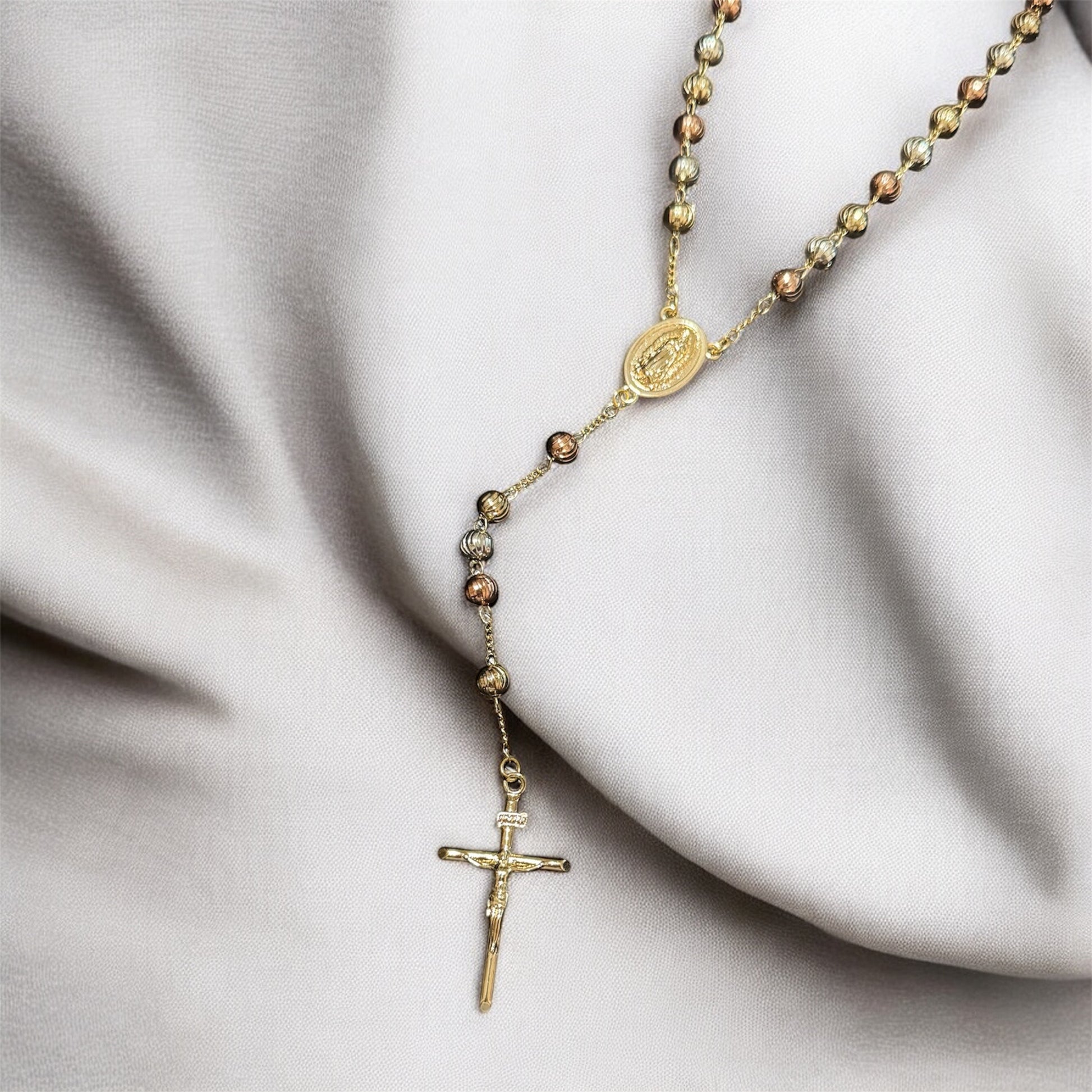 Rosary 3: 17.5” long total (22” + 1.5” extension) 14k gold plated